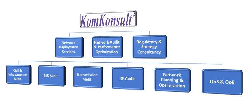 KomKonsult performs end-to-end network audit to evaluate and optimize the performance of network. The audit process addresses technical evaluation as well as identification of KPI’s, BoQs, Quality of work for on-site installed equipment i.e. Radio, Transmission, BSS and Civil works. The result of audit is extensive reporting and providing suggestions and recommendations to improve network quality based on our expert judgment.